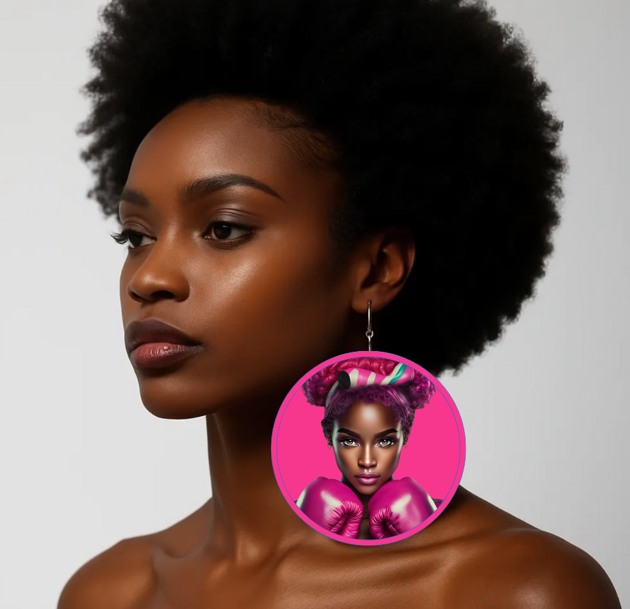 This pair of wood grained circle earrings is a must have. This message of encouragement is printed on both sides. The front facing is an image of a strong black woman and the rear face is the mosaic image of a hummingbird. Power and multifaceted is the message! Exude the power working in you and embrace every aspect that makes you unique.