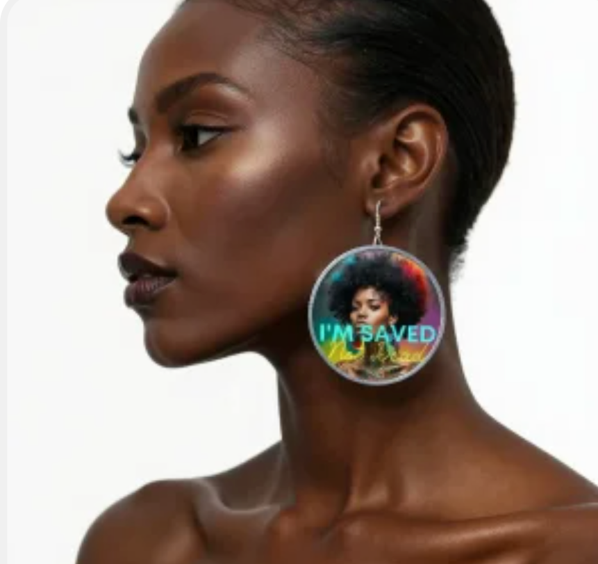 Make a bold statement with this striking round earring, measuring approximately 2 inches in diameter. Crafted for those who want to express their faith and resilience, this eye-catching accessory features the empowering phrase "I Am Saved Not Dead". Perfect for casual wear, faith-based events, or as a meaningful gift.